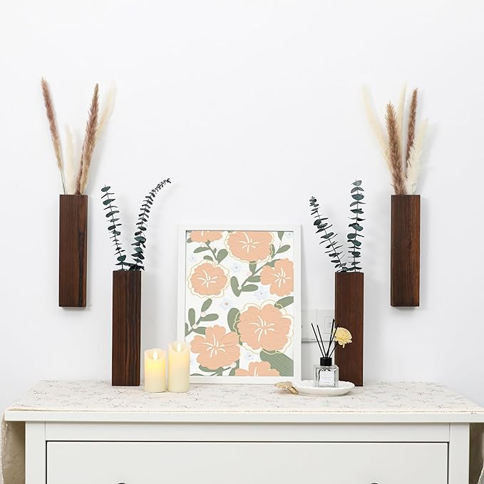 - 【Excellent & Sturdy Material】 Our wooden wall flower decor plnaters are crafted from natural pine wood with unique textures,each piece has its distinct character, adding to their artistic appeal. Though not intended for holding water, these wall plant holders are sturdy and lightweight, ensuring they endure as captivating room decor for an extended period. They serve as an ideal display for artificial greenery plants, faux flowers, seasonal decorations, lavenders, eucalyptus sprigs, or cotton