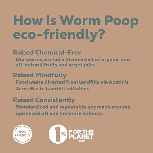- Naturally Boosts Nutrients—This organic-matter fertilizer is rich in nutrients, including nitrogen (N), phosphorus (P), and potassium (K)—all vital for plant growth. This vermicompost is full of beneficial organisms that help break down organic material and feed microorganisms for a nutrient-rich soil. Our worm poop is a single-sourced, US-grown earthworm casting “bred with love” using responsible practices—for a consistent, quality casting that improves soil structure and nutrient uptake.