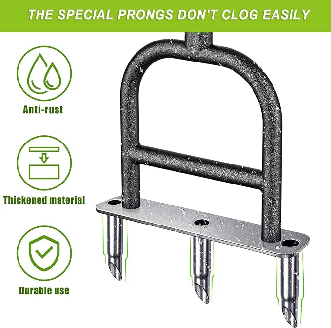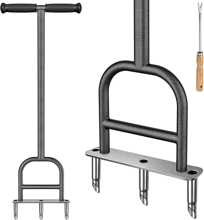 - Soil and lawn Improving: Improve your soil health and lawn appearance with this lawn corer tool that loosens the soil and allows air, water and fertilizer to reach the roots of your grass. This helps your plants grow stronger and healthier, and prevents lawn run-off and soil compaction.