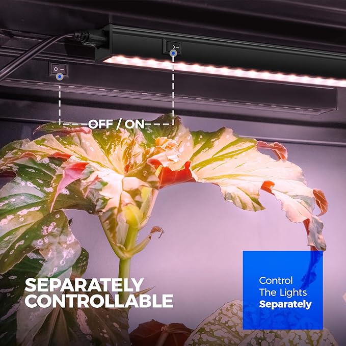 - Separately Controllable: Each grow light have on off switch on the surface of housing, controlling the lights separately or together according PPFD that plants need