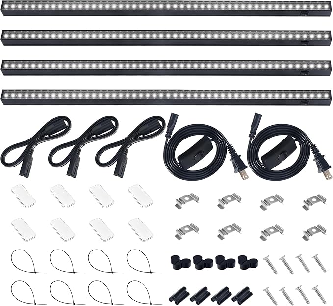 - Easy Installation: With included clips, cable ties, magnetic bar with double-sided tapes, you could install this indoor plant light by yourself in minutes. Our under cabinet grow lights can be directly attached to any magnetic surface and any non-magnetic surface. Just plug in and light up, and you could link up to 16 lights in a series