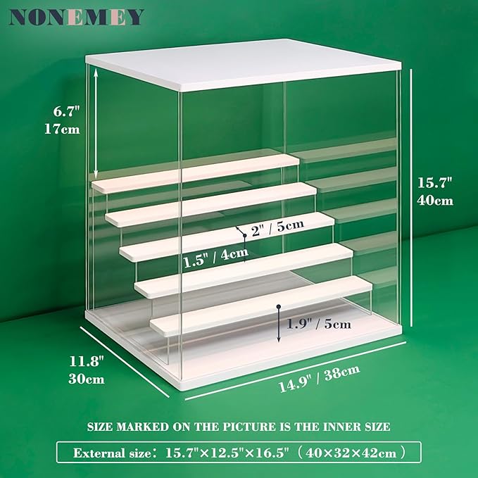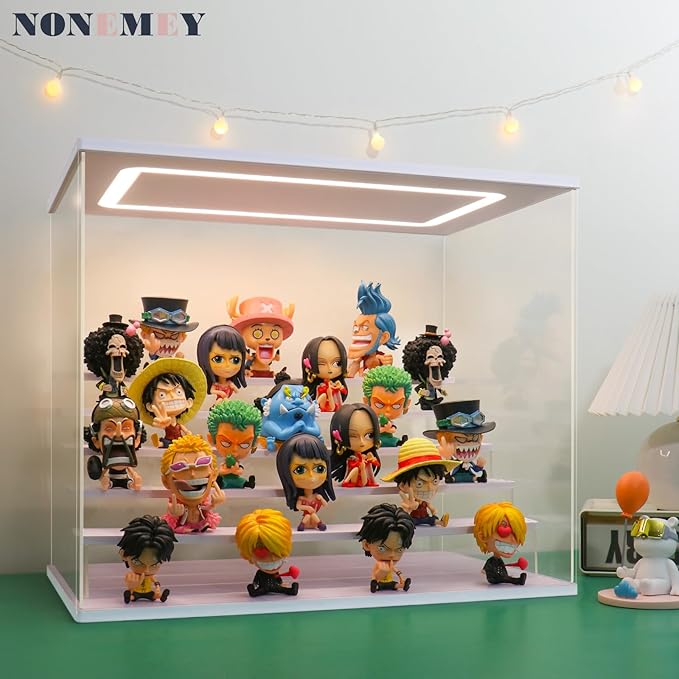NONEMEY Clear Acrylic Display Case Stand with LED Light 2/3/4/5/6 Tier Storage Box Showcase Dustproof Organizer Box for Collectibles (White 6 Tiers 15.7 * 12.5 * 16.5inch)