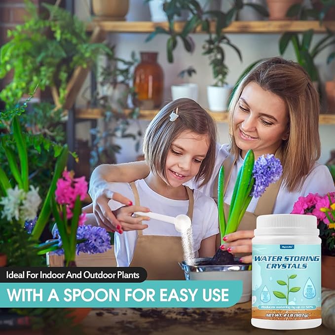 - SAVE TIME - Reduce your plant watering frequency by as much as 50% with these Water Storing Crystals for Plants. They are designed to prevent over-watering by absorbing and storing excess water. This helps to avoid water logging, allowing your plants to thrive.
