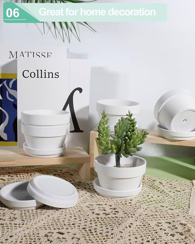 - Saucer&Drainage: Package included 6pcs terra cotta saucer to prevent dust and water from falling out of the drain, to keep the interior clean and to increase the beauty of the room the drainage outlet can prevent water accumulation and extend the life of the plant.