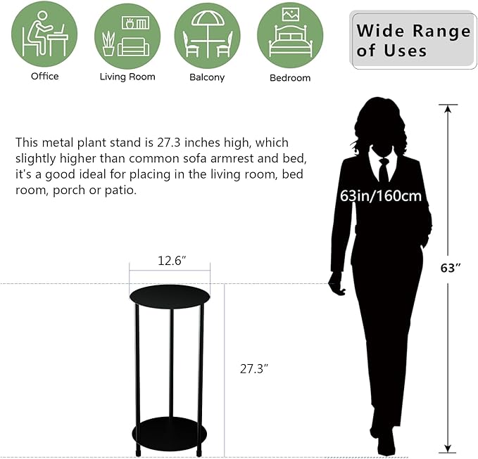 - 【Perfect Height】: This metal plant stand is 26.3 inches high, which slightly higher than common sofa armrest and bed, it's a good ideal for placing in the living room, bed room, porch or patio.