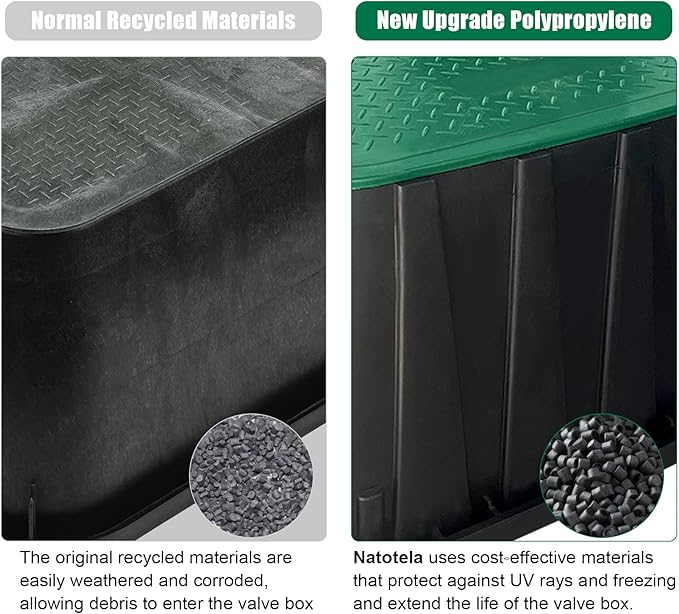 - 【Anti-slip Design】There is a anti-slip disign on the surface of the sprinkler valve box cover.Don't worry about slipping when pass by the sprinkler covers for outside
