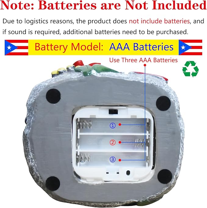 - 🇵🇷🐸【 Note: Batteries are Not Included 】 AOKDEER Puerto rico accessories do not include batteries, because batteries are not good to transport, please buy yourself, so please read the product description in detail. This product can contain three Batteries. AAA Batteries have a switch at the bottom of the product. Do not put them in a dark and humid place.🇵🇷