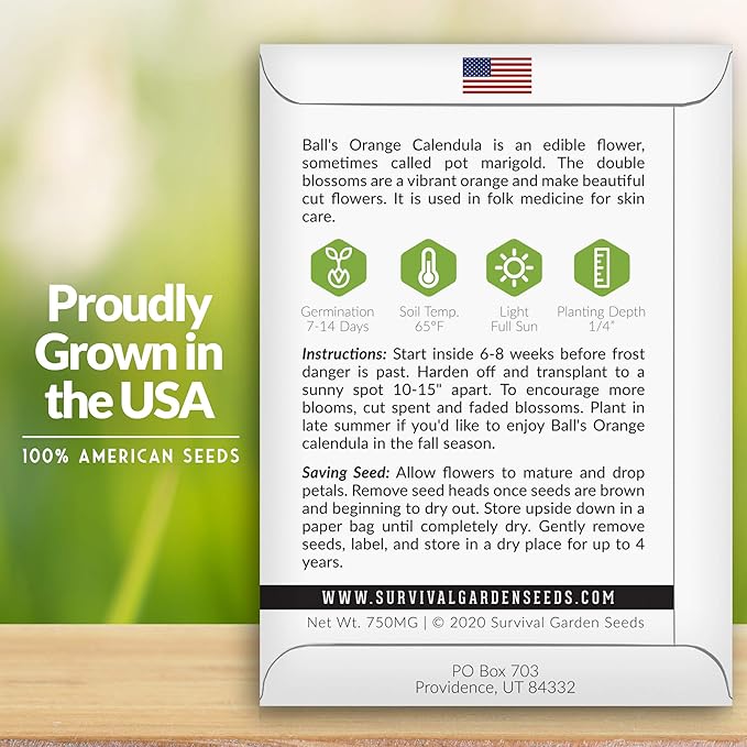 Ball's Orange Calendula Seed for Planting - 2 Packets with Instructions to Plant & Grow Medicinal Herb Plants in Your Home Vegetable Garden - Non-GMO Heirloom Variety - Survival Garden Seeds