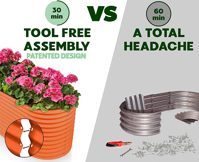 - EFFORTLESS ASSEMBLY, LIKE NO OTHER! Begin your planting journey by choosing our innovative patent-pending design, featuring the perfect combination of easy assembly and durability. Thanks to our unique tool-free design, assembly is a breeze and can be completed in just 30 minutes! Get started on your garden right away and enjoy fresh, healthy produce in no time.
