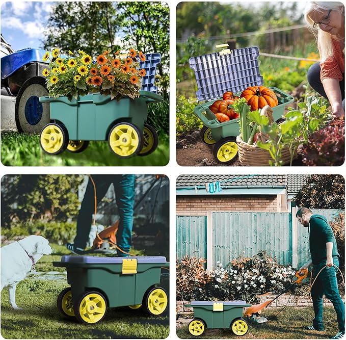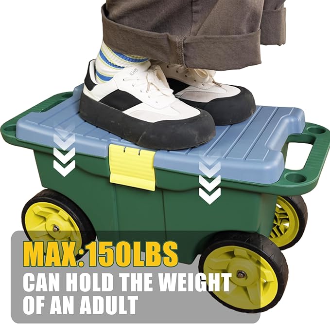 - MATERIAL DURABILITY: This gardening cart features a durable plastic construction that can withstand the weight of an adult man, is suitable for outdoor use and is easy to clean.