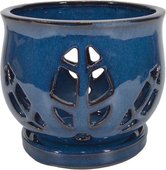 W&W Orchid Pot with Holes and Saucer for Repotting, Blue, 6.5 Inches