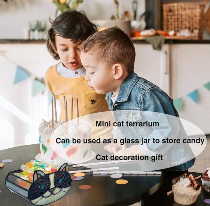 Cactus Black Cat Planter, Cute Small Stained Glass Cat Planter,Cat Terrarium Planter for Tabletop Houseplants,Gifts for Cat Lovers 4.33x3.54x2.95 in (Flower Pot Does not Include Plants)