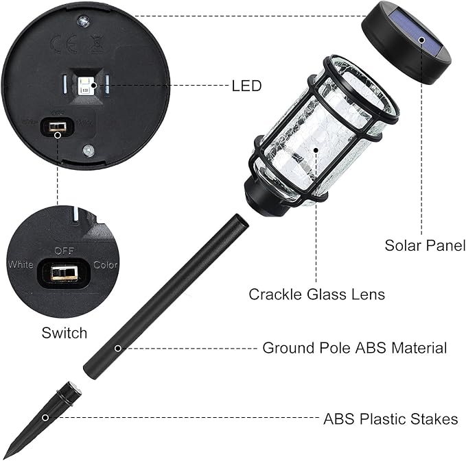 Solar Pathway Lights 8 Pack, Color Changing+Warm White LED Solar Lights Outdoor, Waterproof Solar Crackle Glass Stake Lights for Garden Path Walkway Backyard Lawn Landscape Decoration