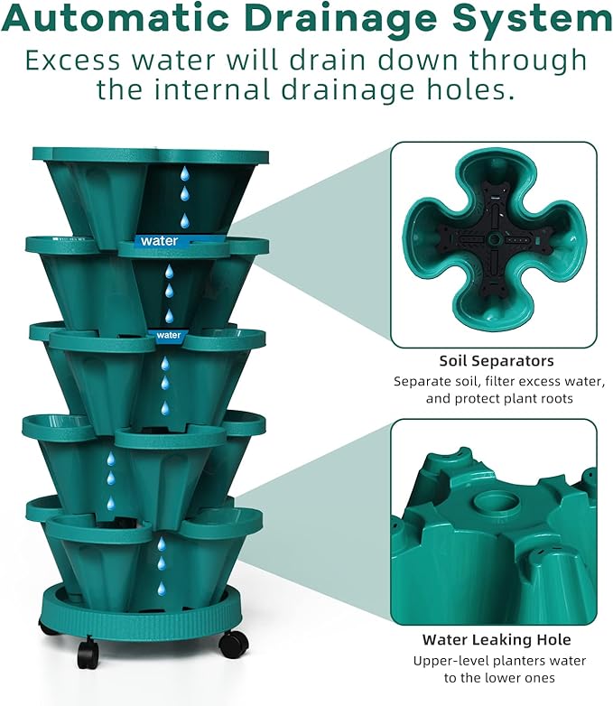 - Flow Design - The water filtration system from top to bottom can save water and retain moisture but prevents overwatering or root rot. 7 filters are placed on each level to keep the soil from going through the big drainage holes, it also helps retain water in each planter level.