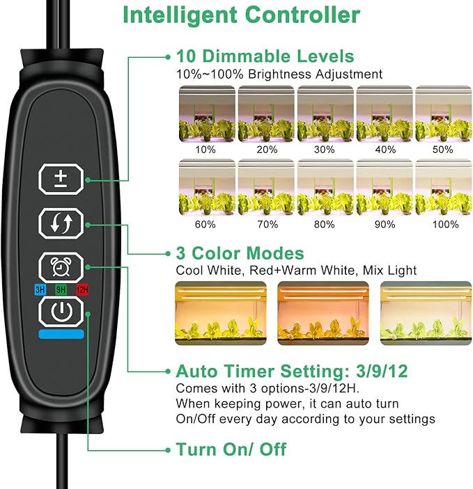 - [3 Spectra Modes & 10 Dimmable Level]- Our plant light strip features 10 dimmable levels and 3 Spectra Modes (white, cold white and red) that can meet the needs of your plant when it is at different growth stages.Keep your plants healthy and vibrant at all times with our grow light strips.