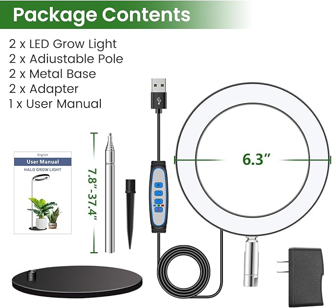 - Two Installation Method: This plant light can be inserted into the soil or placed on the table. 6.3in metal base and non-slip pads to ensure the stability of the table, and is equipped with 9.8 to 37.4in adjustable pole, or inserted ABS sharp to the soil.