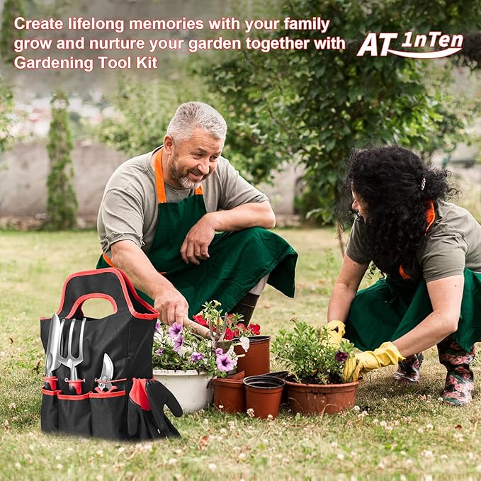 • 𝐔𝐏𝐆𝐑𝐀𝐃𝐄𝐃 𝐆𝐀𝐑𝐃𝐄𝐍 π“πŽπŽπ‹π’ & 𝐄𝐍𝐋𝐀𝐑𝐆𝐄𝐃 π“πŽπ“π„ 𝐁𝐀𝐆:Upgrade your gardening game with AT1NTEN's 8-pack garden tool set. Say goodbye to cheap, unreliable tools and get everything you need for a perfect garden. The durable material allows you to work in any soil, even hard and gravelly ones, while the non-slip rubber grip ensures comfortable and secure handling for long periods of time. Don't settle for less - with the enlarger tote bag, 15.35*19.3 inch make store a breeze.