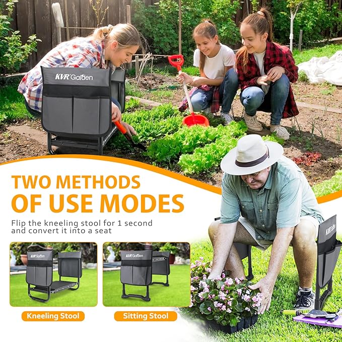 KVR Garden Kneeler Seat Heavy Duty, 2024 Upgraded Garden Bench Widened 10.2", Anti-Rust & Anti-Wear, Foldable Gardening Stool Prevents Back Pain Knees, Gift for Women Men, Seniors, Mom, Dad
