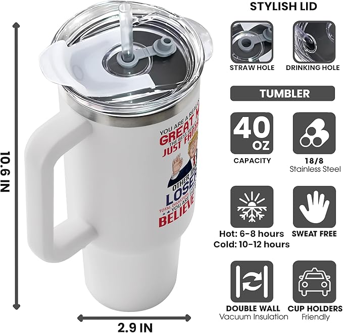 - PORTABLE TRAVEL TUMBLER: fit into most cup holders. Our 40oz tumbler is used for both outdoor and indoor use like working, exercising, backyard barbecues, picnic, hiking adventure, RV tour, beach outing, fishing trip or in any daily activity.