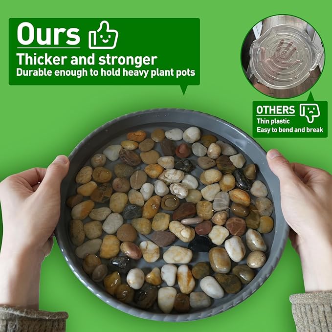 - THICKER AND STURDIER THAN REGULAR GREY PLASTIC PLANT SAUCER- Our plant saucers are specially made of thick and strong plastic; making them thicker and stronger than others; Durable enough to hold heavy pots