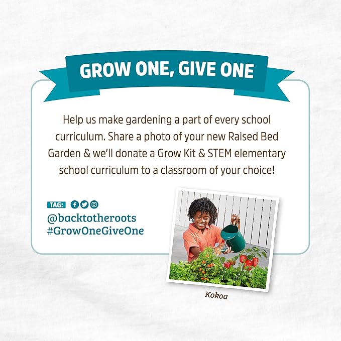 - #GROWONEGIVEONE — share a photo of garden with #GrowOneGiveOne and we'll donate an organic gardening kit + STEM curriculum to an elementary school classroom of your choice!