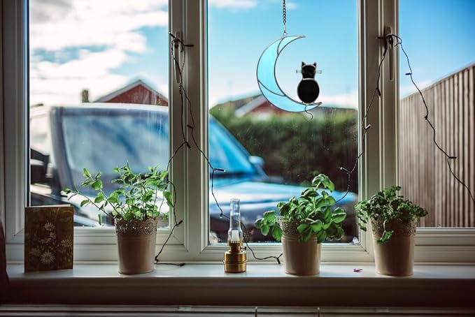 Black Cat Stained Glass Suncatcher,Cat Memorial Gifts for Loss of Cat,Cat Mom Gifts,Cat Sympathy Gifts for Cat Lovers,Window Hanging Ornament