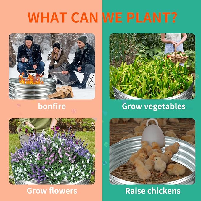 - Durable Construction: The 36 inch diameter round galvanized garden raised bed is made with strong galvanized steel material with crimped edge and corner,no sharpe, ensuring safely using it and long-lasting durability and resistance to rust