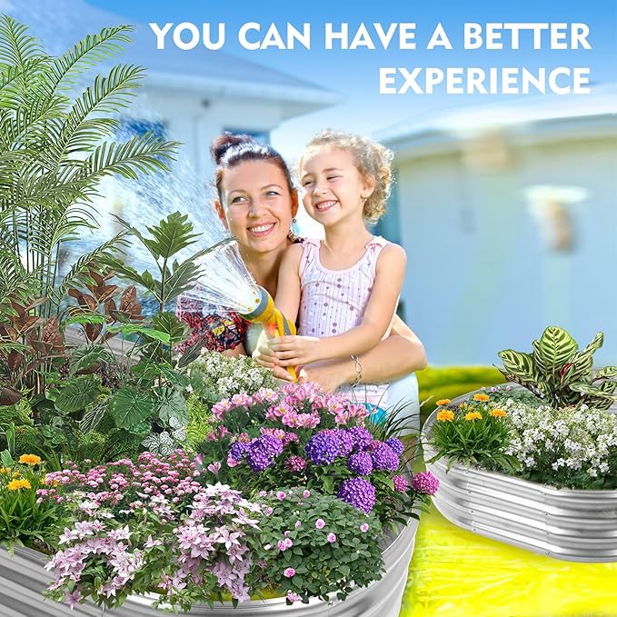 - 【Sturdy Construction】: This oval raised garden bed (5X2.7×1ft),crafted with a galvanized layer of solid steel plate, each is made of 0.8MM thick Q195 galvanized metal sheet, double-layer anti-corrosion galvanizing.Which makes it long-lasting use