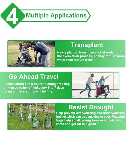 - 【Suitable Trunk】Single watering bag to water trees from 1 to 3 inches in trunk, two watering bag to water trees from 4 to 7.9 inchs in trunk.