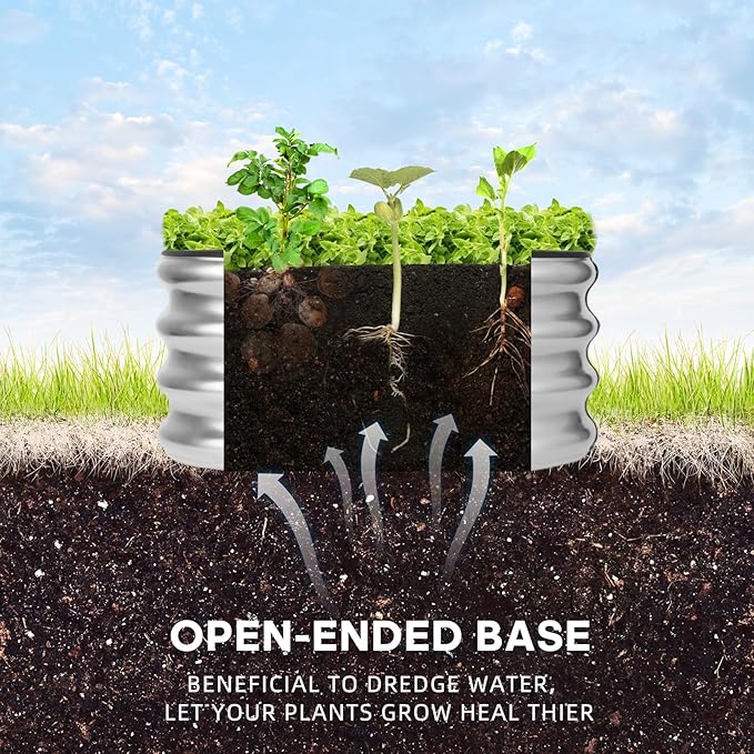 - Open base: This raised garden bed metal galvanized is designed with an open base, Sits on the ground garden bed which can effectively avoid water accumulation and decay, protect the roots of plants, and allow the roots to better absorb nutrients.