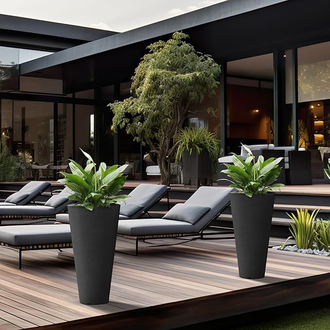 Kante Tall Round Planter Set of 2, 23" H Large Decorative Planter Pots for Outdoor Indoor Garden Patio Front Porch (Black)