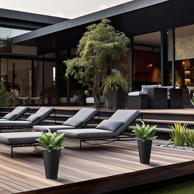 - Minimalist Chic - Elevate your space with these tall and wide planters, embodying sleek lines and a contemporary black finish—a defining trend in modern landscape design. The textured surface introduces an artistic touch to your garden, patio, office, living room, or front door area.