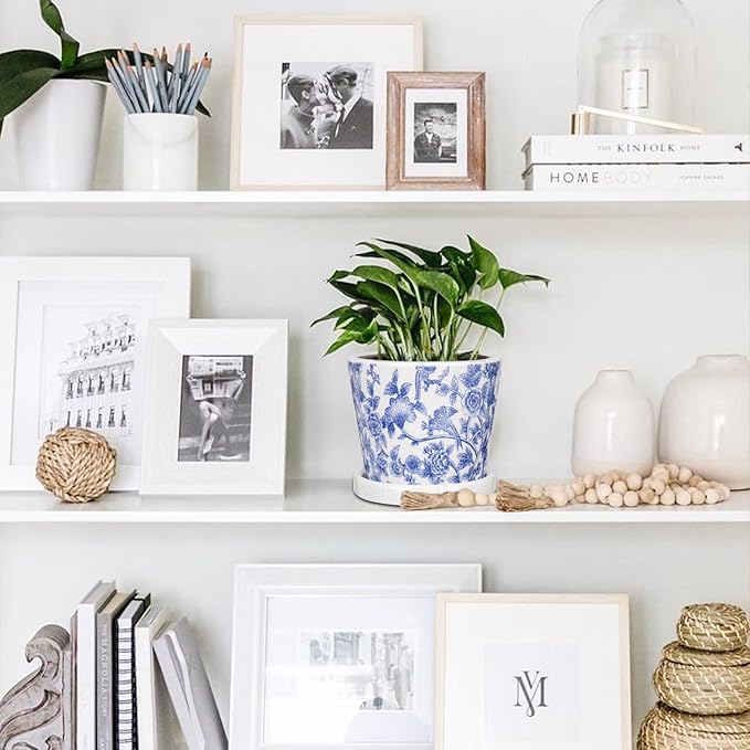 - [Ceramic Plant Pot]-The surface of the white planter features exquisite floral patterns and irregular crackle effects, adding delicacy and uniqueness. The stunning vintage design complements any home or office decor and provides an attractive visual display for your plants, making them stand out.