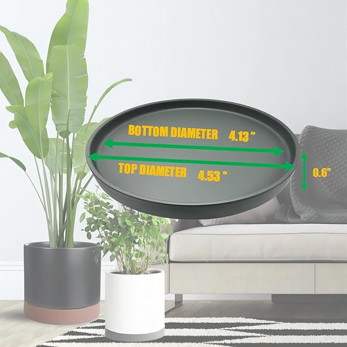 - 🌿 【 Multi-size plant dish 】 : Plant Flower pot saucers, offers a variety of small, large, extra large size plate plant saucer and flowerpot tray color, 4/4.7/5/5.6/6/6.4/6.6/7/8.5/9/10/11/12/12.26 inch plant saucers, from small to large outdoor indoor plants garden. Please compare the size of the plant bottom of the pot with the size of our plant saucer before purchasing to ensure that you can match the right pot, and the large size plant saucer pot tray is compatible with the small size pot.