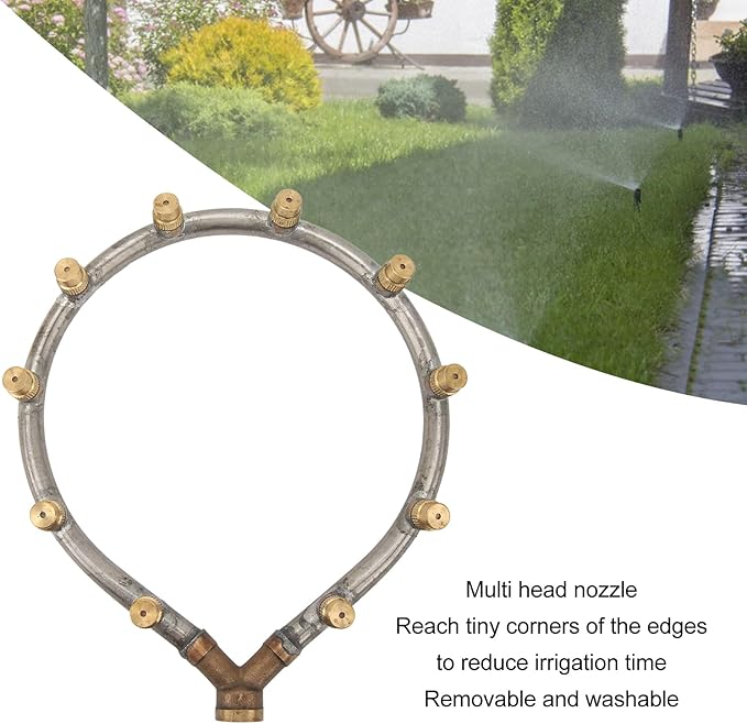 - Multi Head Design: With its multiple head nozzles, atomizing ring can touch even the tiniest corners and edges of your desired area. This design helps to reduce irrigation time by ensuring that every corner and cranny receives proper water coverage
