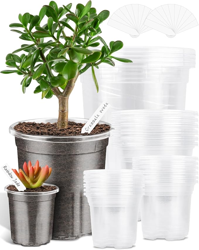 - 40Pack Clear Nursery Pots-The clear multi-size nursery pot set includes 40 pots in four sizes: 12pcs 3.5-inch, 12pcs 4-inch, 12pcs 5-inch, and 4pcs 6.5-inch. It offers the right pot for different plant types and sizes!