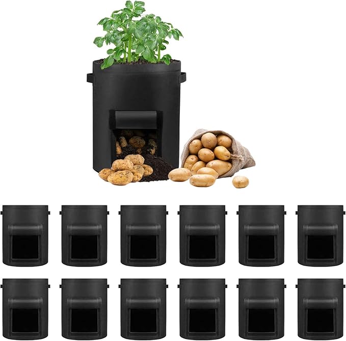 12 Pack 5 Gallon Potato Grow Bags, Heavy Duty Nonwoven Fabric Garden Planting Bag Plant Container with Flap and Handles, Aeration Fabric Pots for Growing Vegetable, Fruits and Flowers