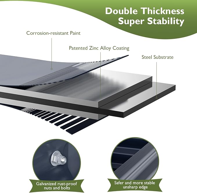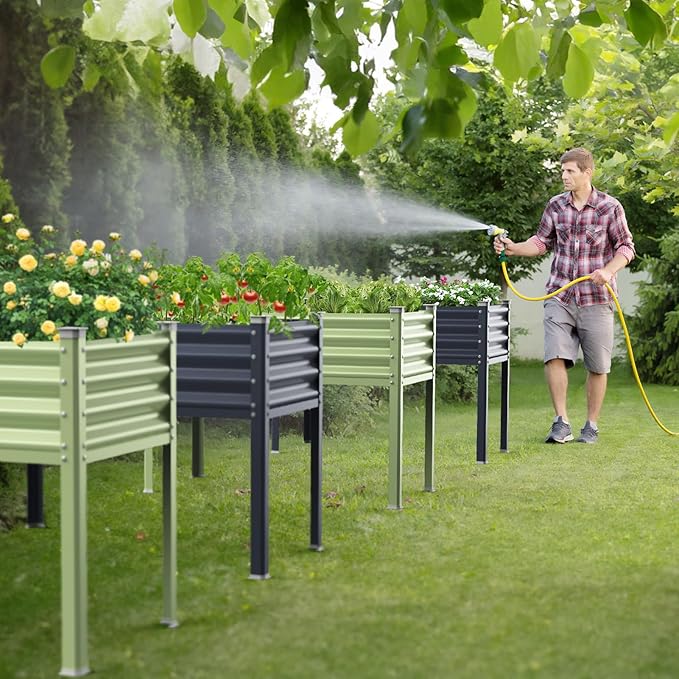 - Attractive Elevated design: Outdoor elevated garden beds with legs are more durable than wooden garden beds. Lift-up design allows you to take care of your plants without bending down. The 4 corners are protected with pads, which Protects you from scratches during installation and planting. The garden box brings great convenience to our planting life, also make your yard a delightful photo spot