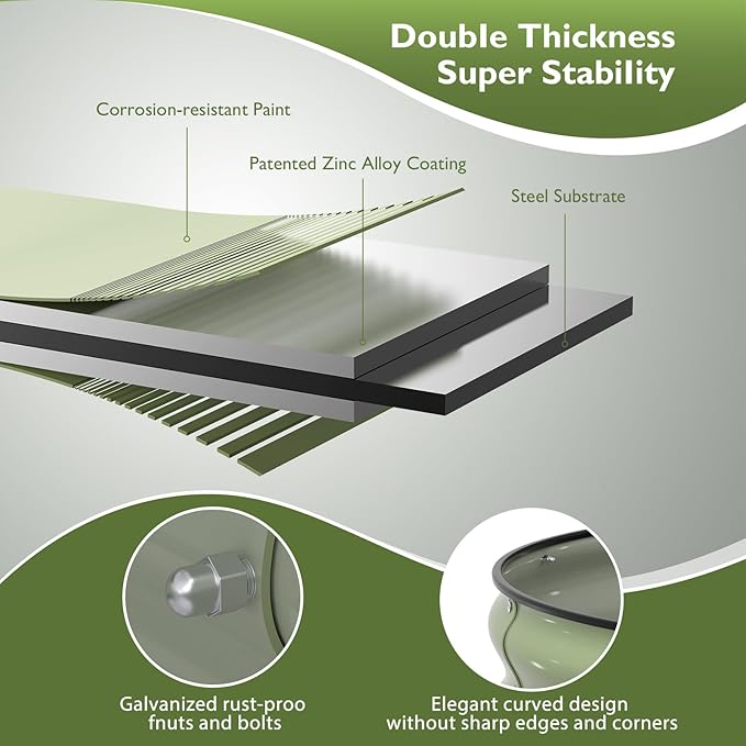 - Oval Designed & Galvanized Material: Raised garden beds outdoor is made of double-layer galvanized metal sheet with anti-rust coating to avoid rusting. The nuts and bolts are also galvanized. Elegant oval design with firm structure and no sharp corners