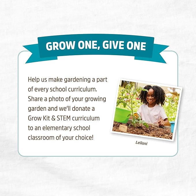 - #GROWONEGIVEONE — Share a photo of your growing garden & we’ll donate a Grow Kit & STEM elementary school curriculum to a classroom of your choice!