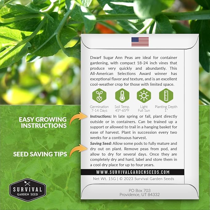 - Sustainable Living - Planting Sugar Ann Dwarf peas in your home garden is a step toward a sustainable, self-sufficient lifestyle. Not only are homegrown peas more flavorful and nutritious than store-bought ones, but they can also be preserved by canning or freezing for future use.
