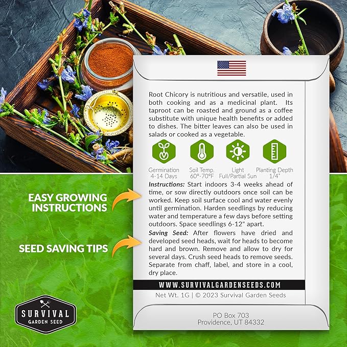 Root Chicory Seed for Planting - 3 Packets with Instructions to Plant and Grow Coffee Chicory in Your Home Vegetable Garden - Non-GMO Heirloom Variety - Survival Garden Seeds