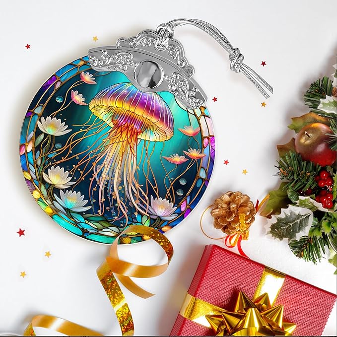 - 🔆Design is permanently imprinted on the ornament via sublimation, so it will never fade or peel. This beautiful jellyfish stained-glass like ornament is sure to make any ornament collector happy.