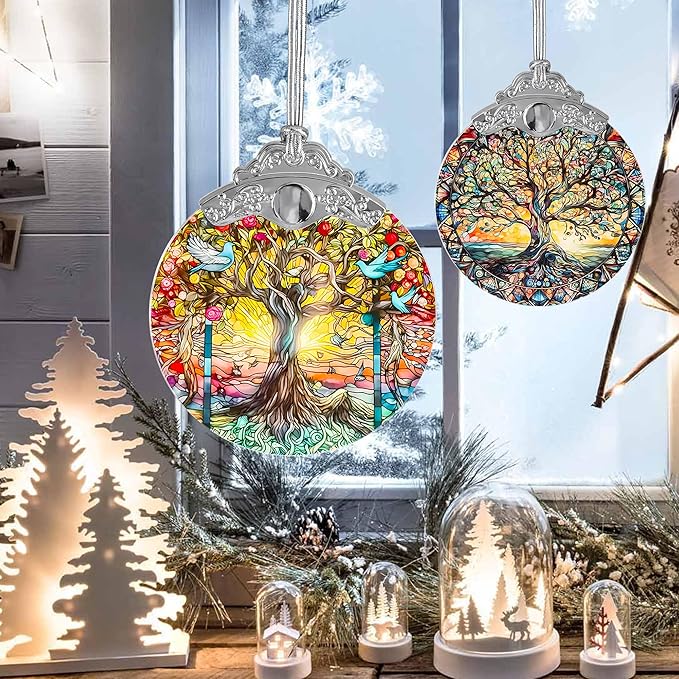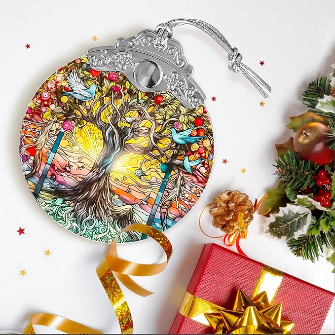 - 🔆Design is permanently imprinted on the ornament via sublimation, so it will never fade or peel. This beautiful tree stained-glass like ornament is sure to make any ornament collector happy.