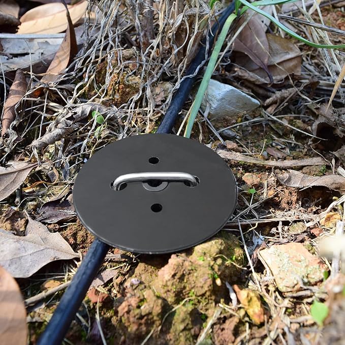 - Packaging and Size: Including 50 x galvanized landscape fabric pins, 50 x round plastic gaskets and 1 x pick hook. The fixing washer can make your project installation firmer, and the pick hook can pull the landscape staples out easily. (Note: To prevent damage to the anti-rust coating on the weed mat pegs, please use a rubber hammer for installation.)Floor mat diameter 2.35”; thickness 2mm, pore diameter 6mm, installation pitch 1”,staples length in 6 inch
