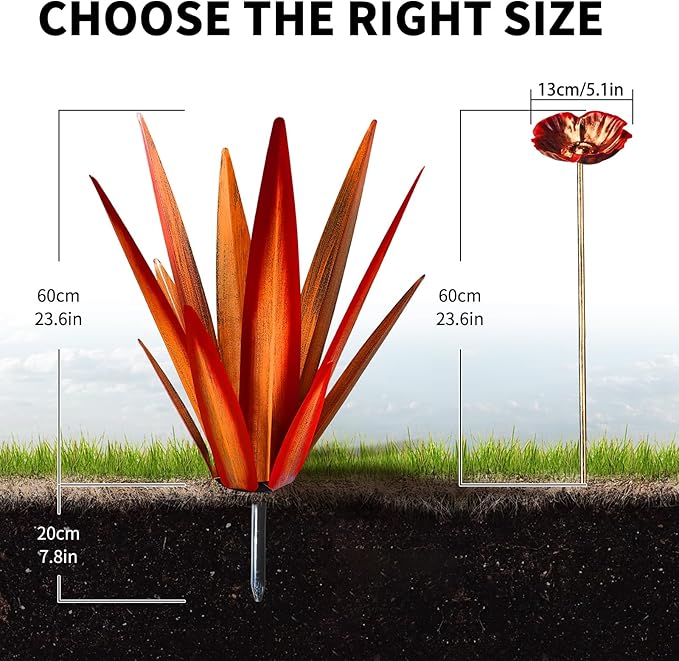 - ❤ [Simple to Install] - The tequila patio decor art sculptures can be placed on the ground directly, easy to install and no need any tools, just put the metal flowers decor anywhere you want.