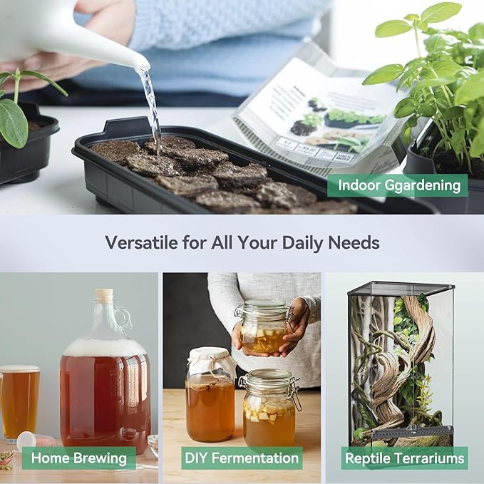 - Wide Range of Applications: LThey are ideal for indoor gardening seed starting and providing consistent, even heat for warm hydroponic systems, home brewing, DIY fermentation, and reptile terrariums.