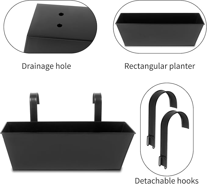 - PERFECT SIZE: Our railing planters measure 16" x 5.1" x 5.1", and the hook is suitable for railings up to 2.5 inches. Make sure to check the size before purchasing, and note that the hook arrives disassembled.
