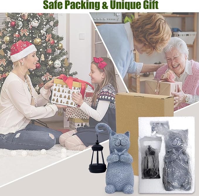 - Easy to Use Cat Yard Decor:Simply turn the figurine on and leave it in the “on” position during the daytime. The solar panel will charge during the daylight hours and light up automatically at night. The charging time is about 6-8 hours, the usable time is 8-10 hours, we have done experiments, if the sun is full during the day, it can be bright for 12 hours.