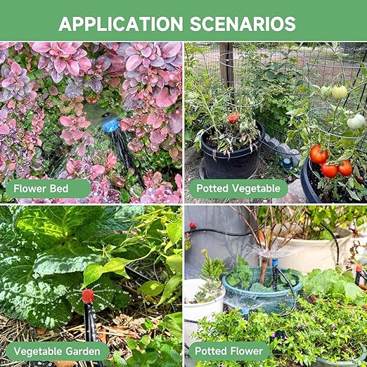 - Easy Installation Guide Included: No need to be a gardening expert! Our kit comes with a straightforward instruction manual. Simply connect the main tubing to your faucet, arrange the distribution tubing and emitters, and enjoy a beautifully irrigated garden with minimal effort. Upgrade your gardening game with our durable, water-efficient drip irrigation kit. Designed for easy installation and versatile use, it's the perfect choice for gardeners seeking simplicity and effectiveness. Get yours today and witness your garden flourish!